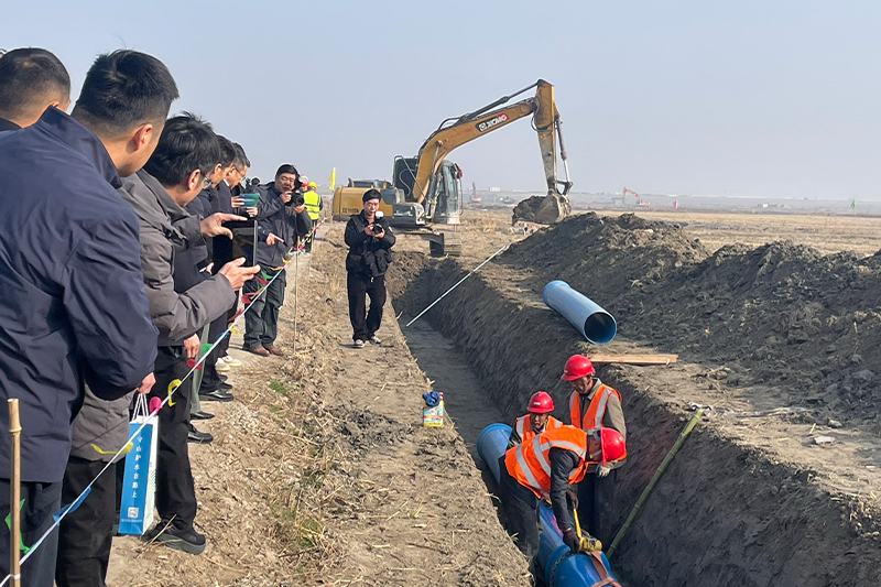 本次会议采用“现场考察+集中部署”的形式。在现场考察环节,与会代表分两组实地观摩了高标准农田建设项目。在考察路线上,由宝塑管业提供的太极蓝PVC-O管道作为高标准农田建设中现代灌溉设施的关键组成部分被重点展示,吸引了众多与会代表的驻足关注。这些应用于高标准农田项目的管道系统解决方案,直接关系到灌溉效率的提升与水资源的高效利用。